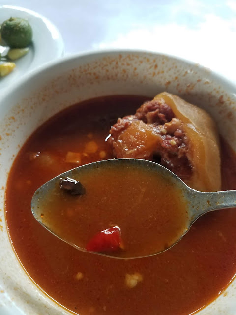 Boiled for at least 7 hours on charcoal to get the right tenderness of the meat. Spices consisting of ginger, star anise, leeks, chilies and onions for that excellent aroma. And lastly, peanut butter and tomato paste to make the sticky sauce.